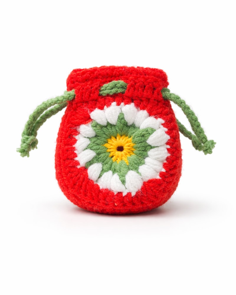 Keep your AirPods safe in a pouch that’s as cute as it is functional. This hand-crocheted AirPods potli is carefully made using soft, durable yarn and finished with a vibrant floral crochet motif on the front. Designed in a traditional potli (drawstring) style, it securely holds your AirPods case while adding a charming, handcrafted touch to your everyday carry. Each piece is 100% handmade, making every pouch slightly unique in texture and finish — no two are exactly the same. ✨ Why you’ll love it • Handmade with love using high-quality yarn • Soft, cushioned crochet protects from minor bumps & scratches • Secure drawstring closure keeps AirPods from slipping out • Lightweight & compact — easy to carry in bags or pockets • Cute floral design that doubles as a mini accessory • Perfect for gifting or personal use 📦 Product Details • Product type: AirPods pouch / potli • Material: Hand-crocheted yarn • Closure: Drawstring • Design: Floral motif (front) • Color: Red base with green & white flower • Compatibility: Fits standard AirPods & similar-sized cases 🎁 Ideal for • AirPods & earbuds storage • Everyday carry accessories • Handmade gift lovers • Birthday / return gift / festive gifting 🧵 Handmade Disclaimer As this product is handcrafted, slight variations in stitch, size, or color may occur — this is what makes each piece special.